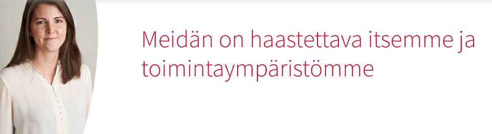 - Meillä on haasteita muuttaa perinteisen tuoteyrityksen asemaamme niin, että vastaamme huomispäivän markkinoiden tarpeisiin. Meillä on paljon hyviä ideoita, joista on kerrottava selkeästi ja houkuttelevasti. Se on minun työtäni, josta todella nautin, ja odotan innolla tulevaa. Meidän on haastettava itsemme ja muut ja uskallettava viedä ajattelumme mukavuusalueen ulkopuolelle.